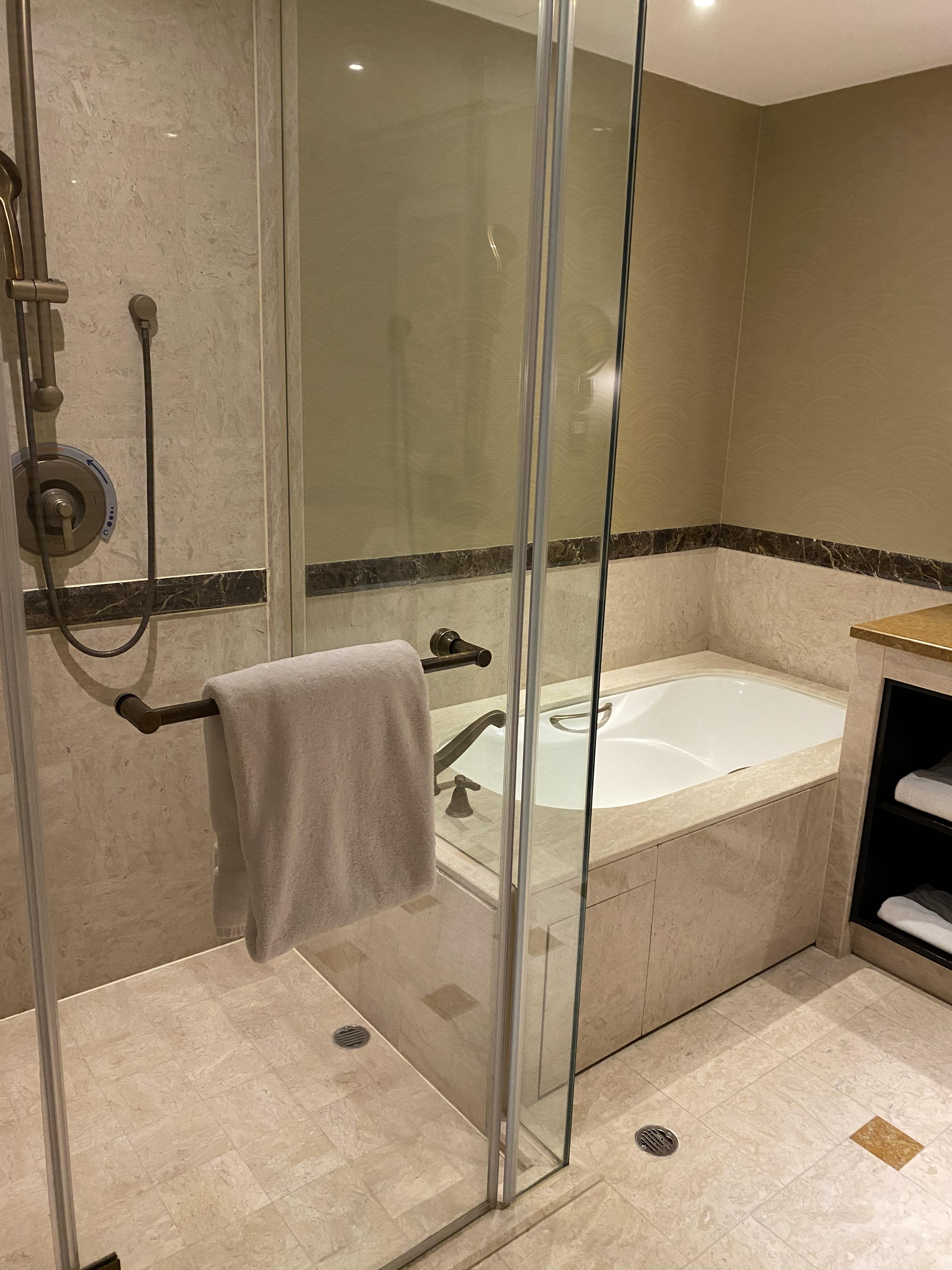 화장실엔 욕조랑 샤워부스 둘 다 있었다 !