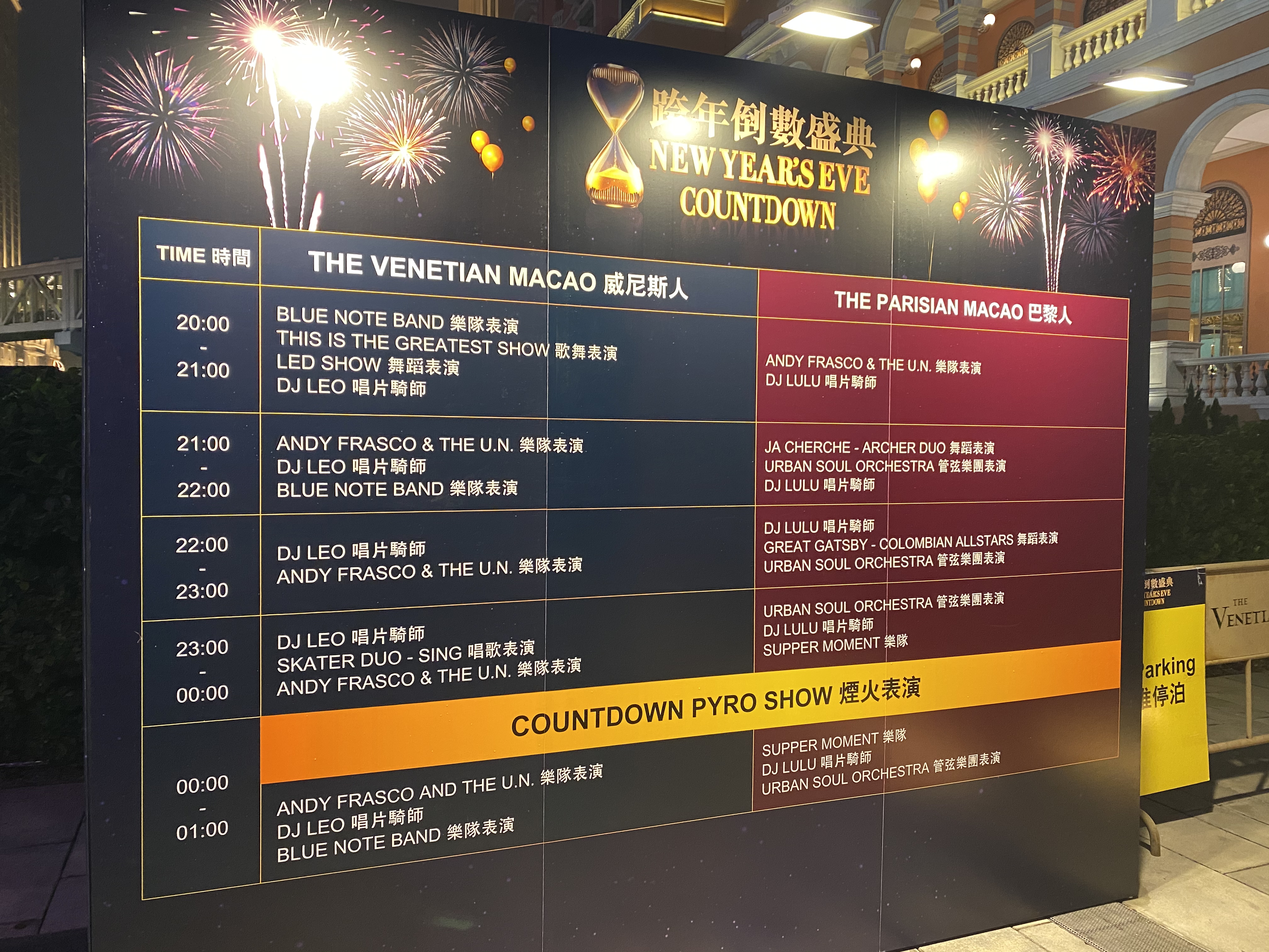 베네치안 호텔 바로 앞에서도 공연해서