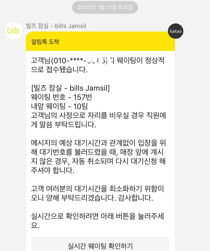 차례되면 카톡 안오고 직원이 번호 불렀을때 자리에 없으면 걍 아웃임ㅋㅋㅋㅋ