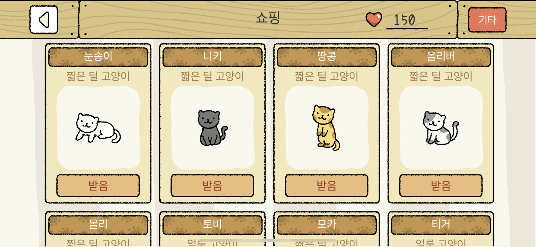 고양이 케어하는걸로 하트벌이 하는 게임이라