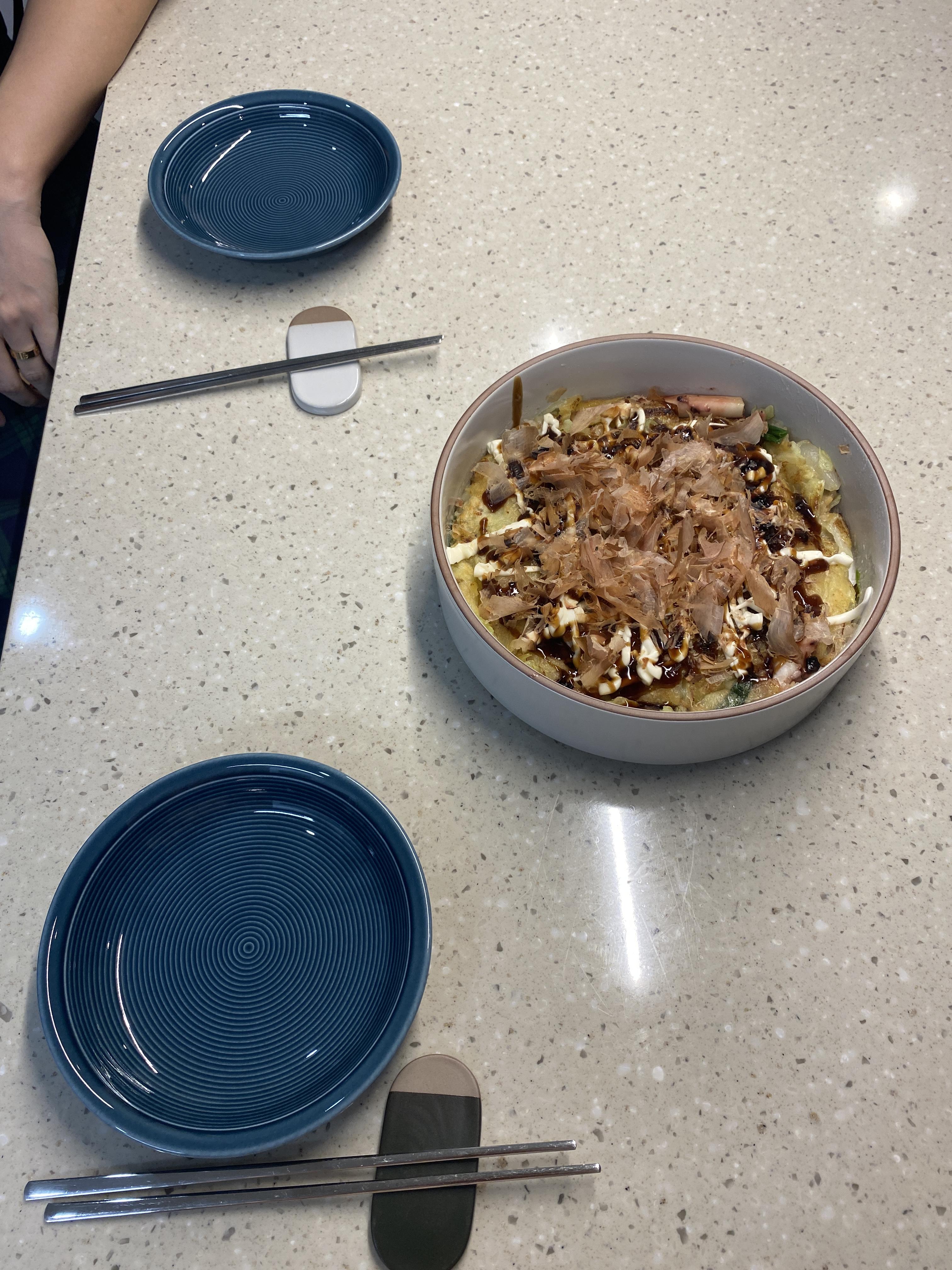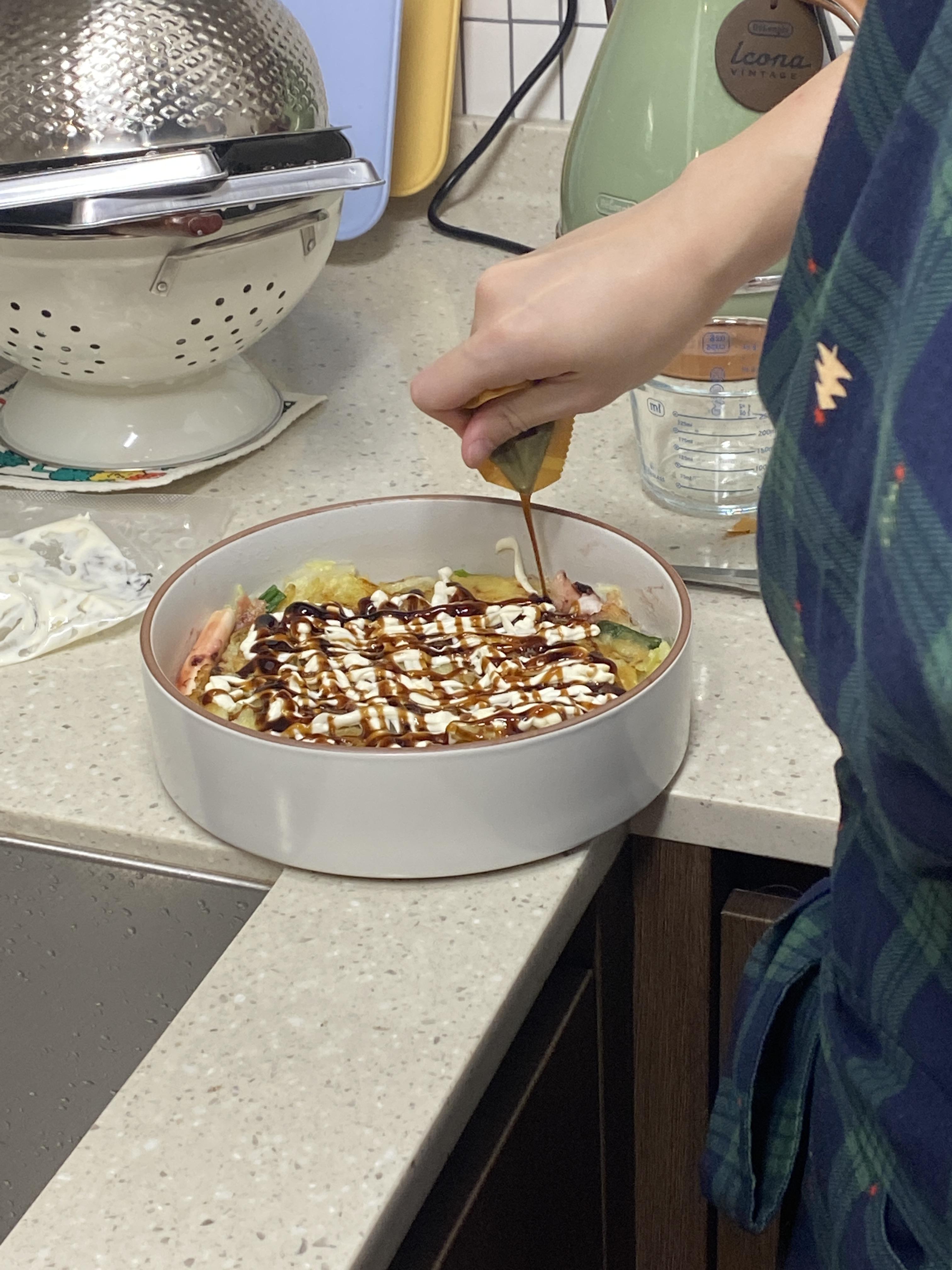 남편은 연말에 휴가중이라서 저녁에 오꼬노미야끼 해줬어용