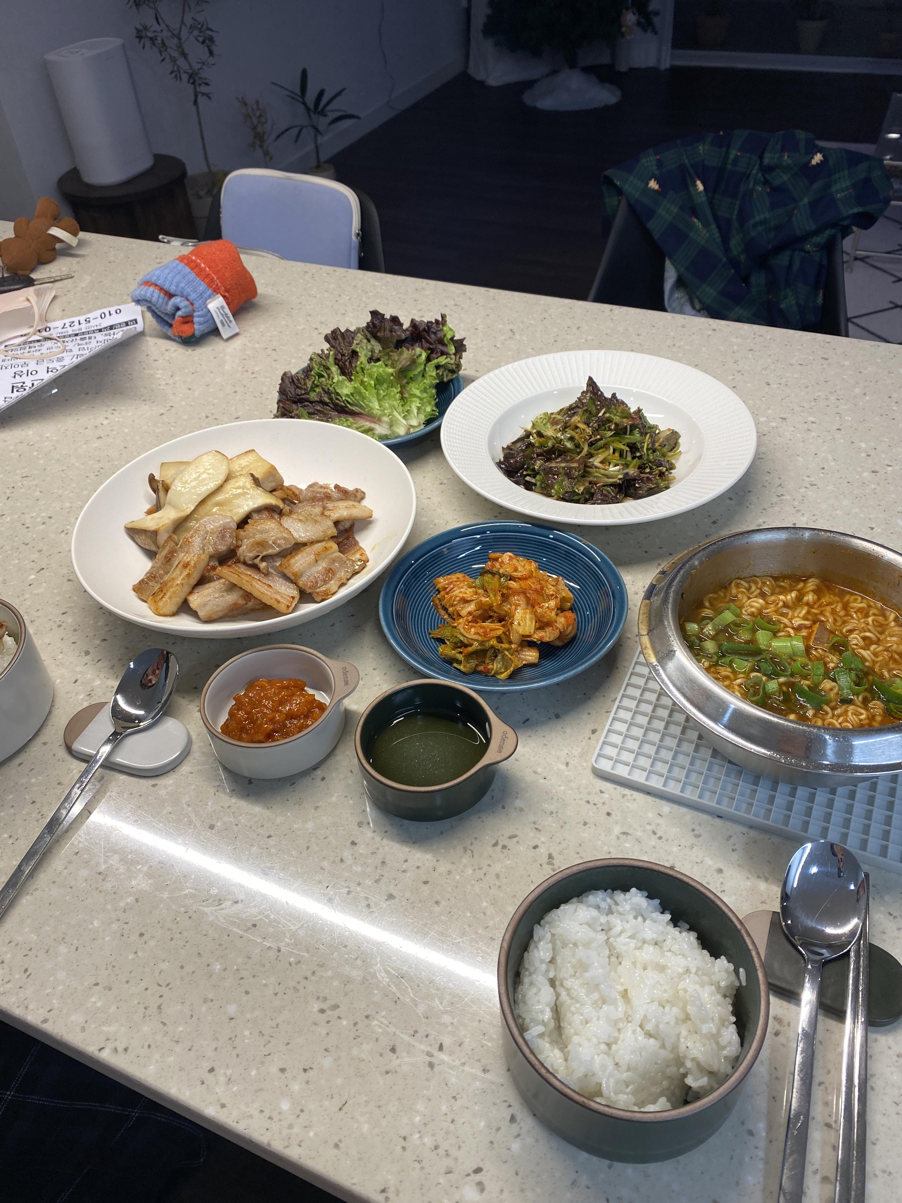 오늘 저녁은 삼겹살에 라면 입니다요~~~