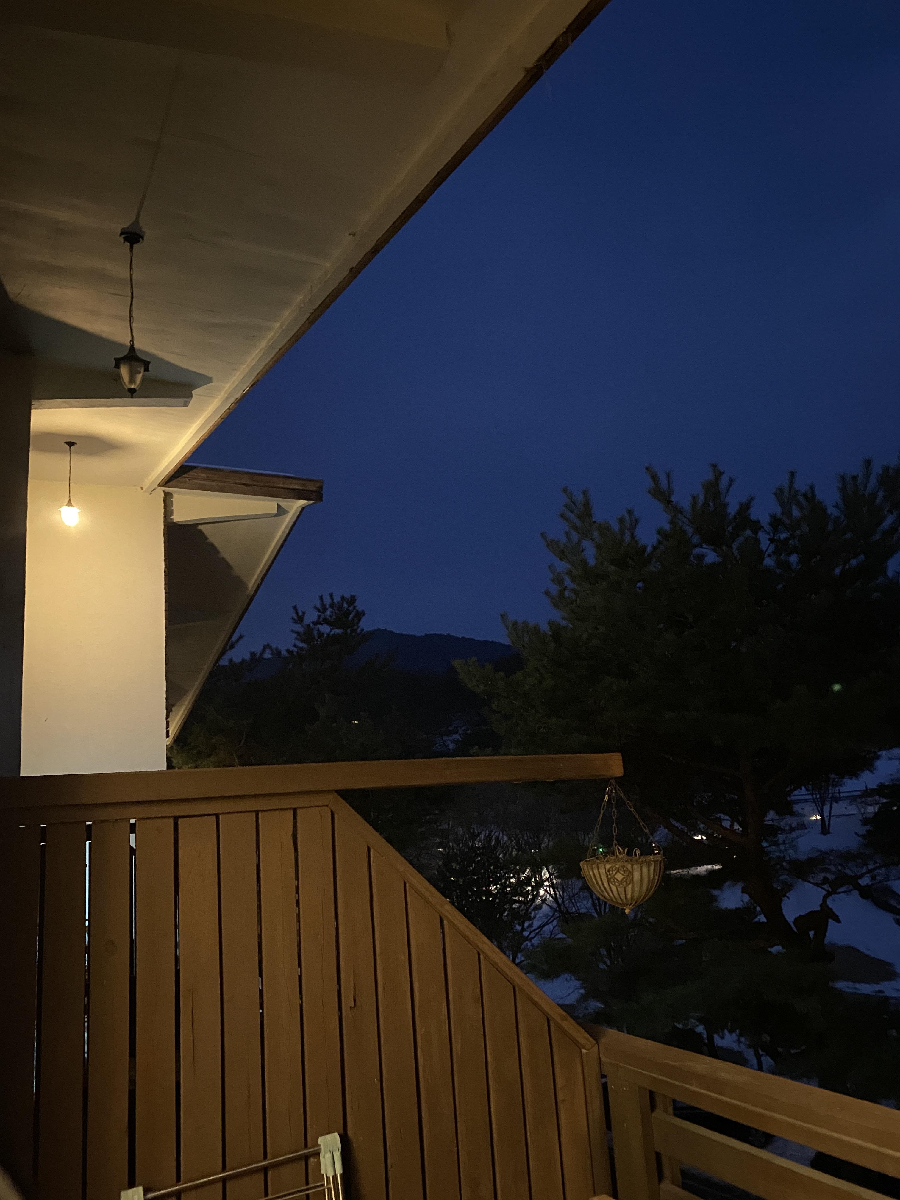 불꽃놀이 한다고 써있어서 미리 테라스에서 기다렸어요