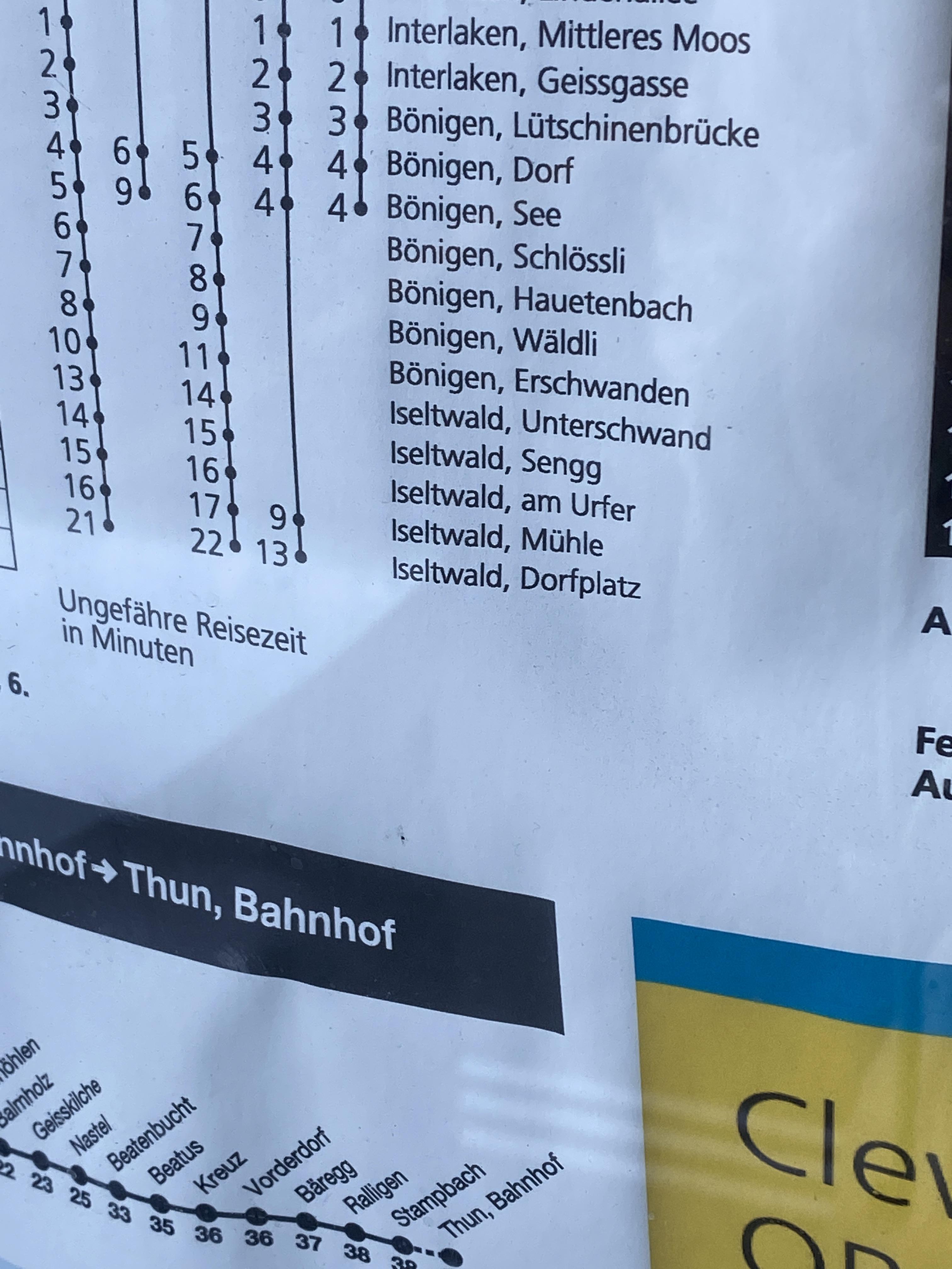 인터라켄 동역 앞 버스정류장에서 이젤발트 가는 버스 탑승 !
