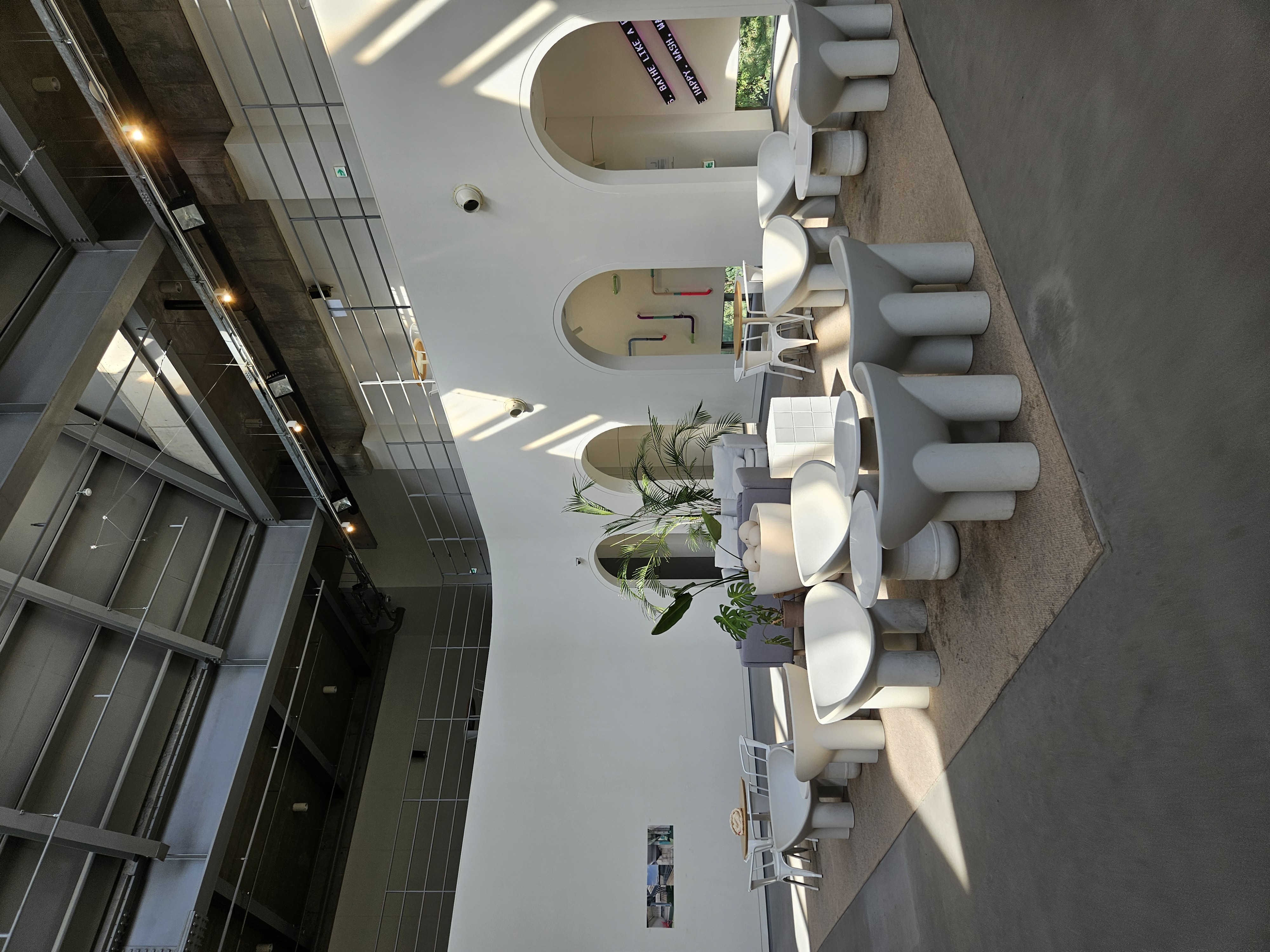 입구에 들어서면 욕실에서 영감을 받은 다양한 디자인 요소들이 눈길을 사로잡아요. 이곳이 단순한 카페가 아니라는 걸 단번에 느낄 수 있었어요.