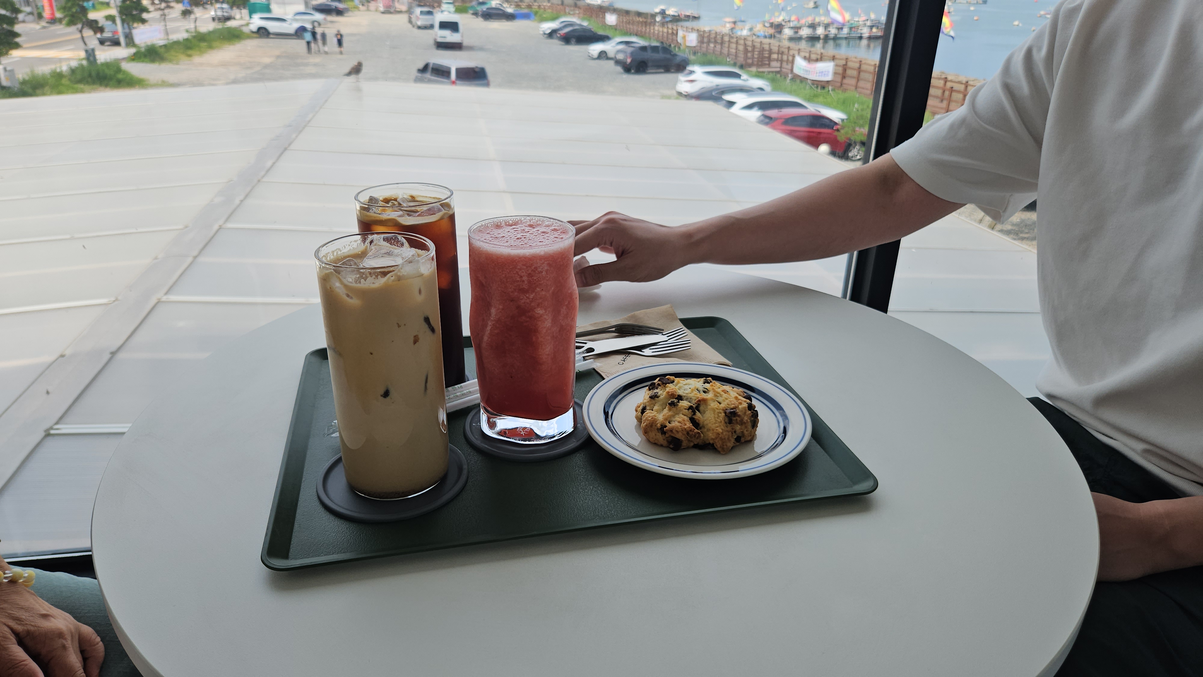 카페 내부는 전체적으로 미니멀하면서도 세련된 분위기였고, 특히 창가 자리에 앉으면 바다를 바로 앞에서 감상할 수 있어 너무 좋았어요. 조용하고 여유로운 분위기라서 데이트나 혼자 힐링하기에도 딱 좋은 곳이었답니다.