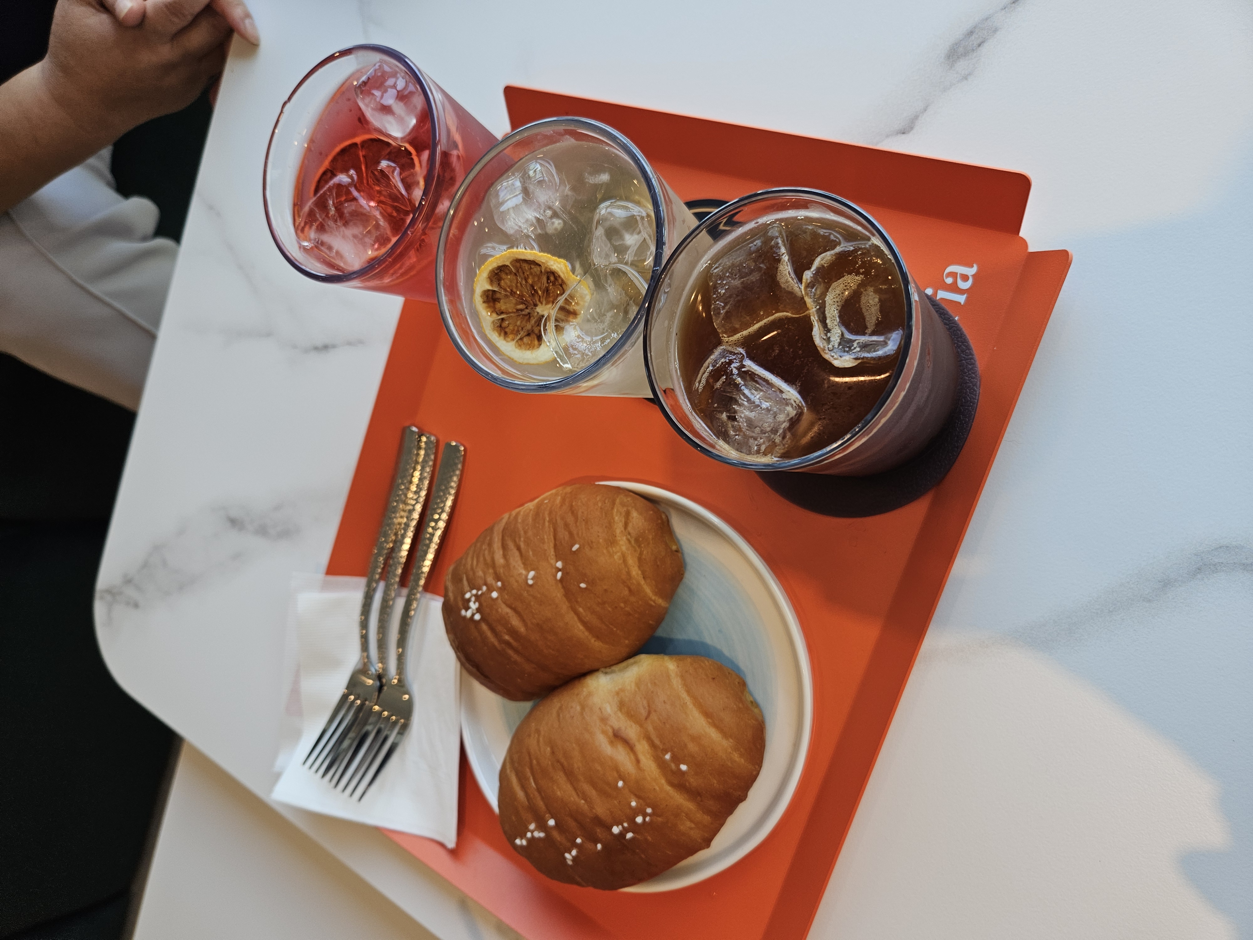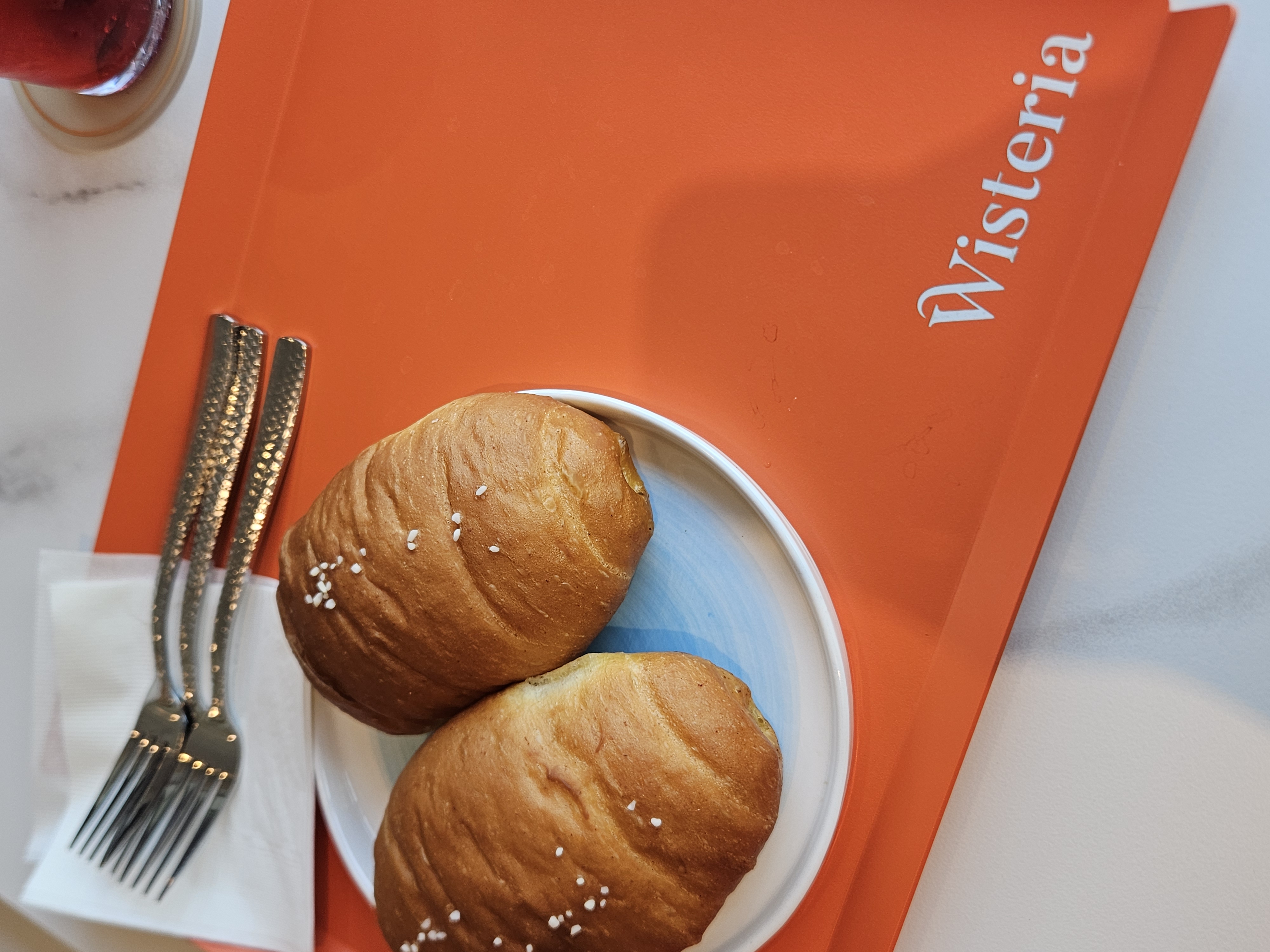 위스테리아에서는 다양한 음료와 디저트를 즐길 수 있어요. 커피부터 티, 주스까지 다양하게 준비되어 있으며, 디저트로는 케이크, 마카롱, 소금빵 등이 있어요.