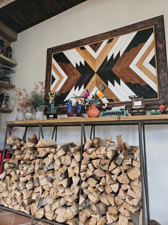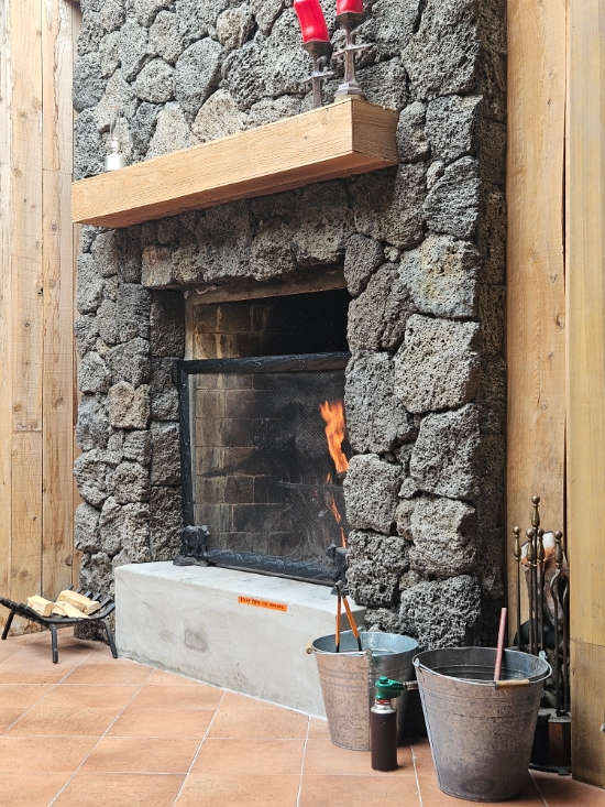 실내는 나무의 따뜻한 질감이 살아 있는 인테리어 덕분에 더욱 아늑하고 편안한 분위기였어요. 특히 장작 난로가 있는 공간이 있어, 추운 날 방문하면 더욱 운치 있을 것 같더라고요. 난로 옆자리에 자리를 잡고 둘러보니 장작이 쌓여 있길래 "진짜 불을 피우는 걸까?" 싶었는데, 직원분이 직접 난로에 불을 지펴 주셨어요. 덕분에 뜻밖의 불멍을 하며 기분 좋은 시간을 보냈답니다.