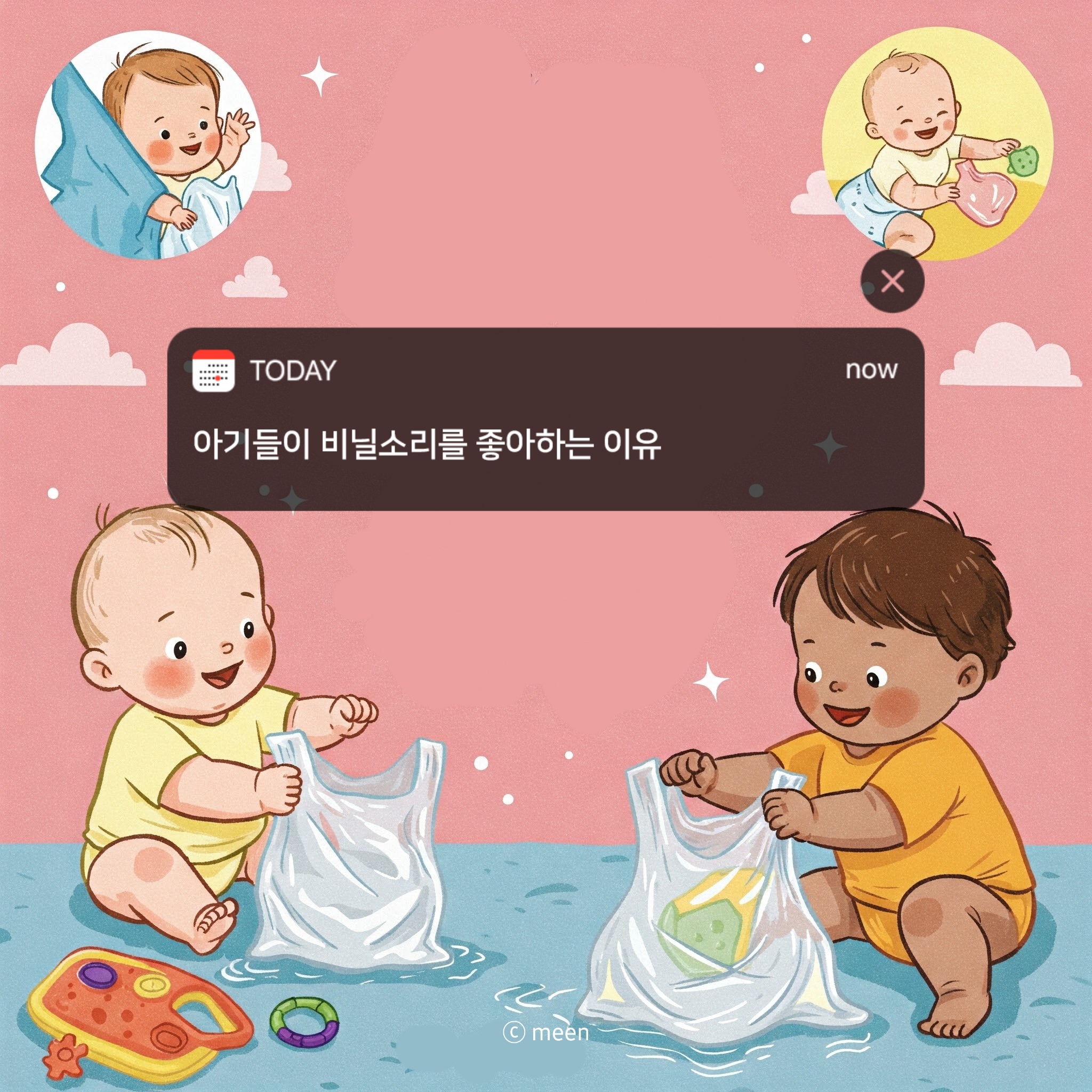 비닐이 ‘바스락~’ 할 때 나는 고주파 사운드는 아기들 귀에 짜릿하게 들리는 거죠!